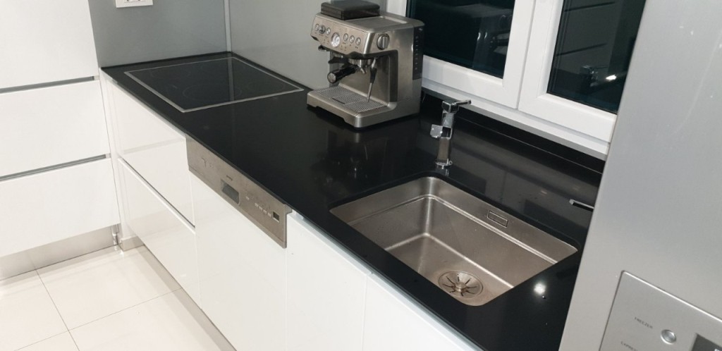 Synthetic quartz stone is extremely scratch-resistant due to its high content of natural quartz in its composition (95%), and is therefore recommended as a long-lasting solution for a kitchen countertop, bar, bathroom sink countertop, or dining or living room tabletop. The polymer resins that bind quartz crystals together give this material a certain level of elasticity, which, combined with the hardness of quartz, contributes to its resistance to various impacts that may occur in everyday use. It is non-porous and therefore does not absorb various liquids that it may come into contact with in the kitchen, such as coffee, tea, vinegar, oil, milk, wine, carbonated drinks, etc. The material is also resistant to very high temperatures (up to 150°C). Important to know: There is no material that is completely resistant to scratches and absorption, so careful handling is recommended for quartz, as with all other materials. Although it is resistant to high temperatures, it is not advisable to place hot objects directly on its surface; instead, it is necessary to place something under the hot object and then place it on quartz.
